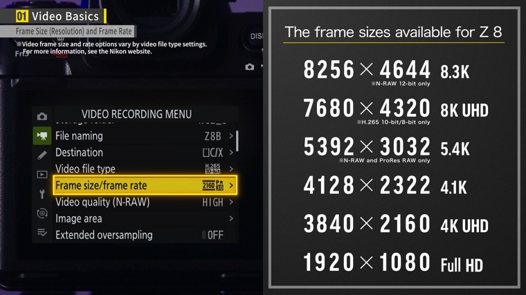 With the Z8, you can choose from six resolution options.