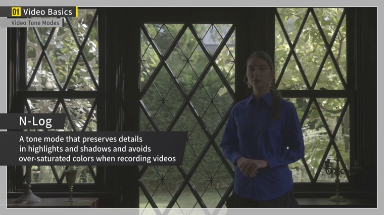 N-Log is a tone mode designed for color grading that preserves details in highlights and shadows and avoids over-saturated colors when recording videos.