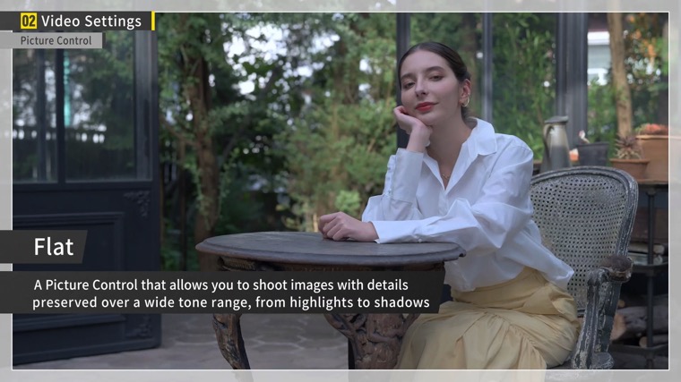 If you aren't shooting in N-log or RAW format, you can apply Picture Controls. I recommend “Flat” for shooting videos.