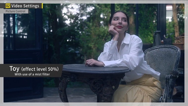 If you want to make a short video without any editing, another option is to use Creative Picture Controls. For example, selecting “Toy” and setting the effect level to 50%, slightly lowering the level, will allow you to produce a cinematic effect with ease.