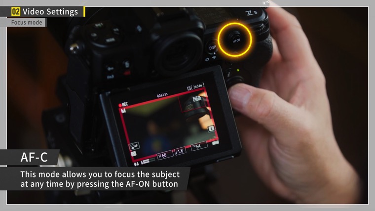 Professional videographers often use manual focus, but if you are just getting into video recording, I recommend using the AF-C autofocus setting.