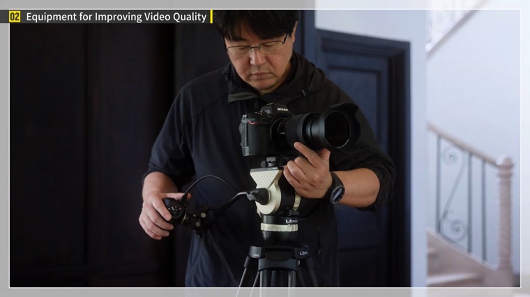 Third is the video tripod. Unlike photo tripods, which are designed to keep cameras in place, video tripods allow you to move the camera smoothly up, down, left, and right. This enables you to perform smooth camerawork when capturing moving subjects.