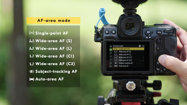 You can use subject detection in six of the seven AF-area modes: Wide-area AF (S), Wide-area AF (L), Wide-area AF (C1), Wide-area AF (C2), Subject-tracking AF, and Auto-area AF.