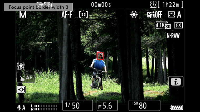 The focus point border can be adjusted in three different widths via custom settings menu [a11 Focus point display], [Focus point border width] setting. This helps to make the focus point more visible when you have, for example, a scene with a busy background.